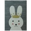Berfin Dywany , Kusový koberec Smart Kids 22414 Grey, 160x230, šedá, detská izbaParádny motív koberce do detských izbičiek pre malých chlapcov i dievčatá. Koberec je zdobený bielym zajačikom s korunou na hlave. Zajačik je na sivom podklade s bielymi bodkami. Koberec má 14 mm dlhý vlas a je vyrobený z vlasu typu frisé , ktoré je veľmi odolné. |