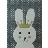 Berfin Dywany , Kusový koberec Smart Kids 22414 Grey, 120x180, šedá, detská izbaParádny motív koberce do detských izbičiek pre malých chlapcov i dievčatá. Koberec je zdobený bielym zajačikom s korunou na hlave. Zajačik je na sivom podklade s bielymi bodkami. Koberec má 14 mm dlhý vlas a je vyrobený z vlasu typu frisé , ktoré je veľmi odolné. |
