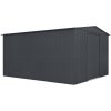 domček GLOBEL 1012 ANTRACIT so strešným oknomKovový záhradný domček na náradie, 1x strešné okno, š 295 x d 361 x v 203 cm, zast. plocha 10,65 m2, farba antracit. |