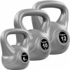 MOVIT® Sparset Kettlebell činky sivé 4kg, 10kg a 12kgZvýhodnená súprava obsahuje 3 Kettlebells činiek v hmotnosti 4 kg, 10 kg a 12 kg. Okrúhla činka s rúčkou s plastovým povlakom chrániacim podlahu. Masívny a profesionálny dizajn s kompaktnou výplňou, plochá spodná strana zaisťuje stabilný postoj na zemi. |