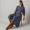 Midi šaty s potlačou modrá 048 BlancheporteMidi dĺžka. Nariasený stojačik. Vpredu vo výstrihu prestrih a originálne prekríženie s potlačou. V páse pružný prestrih. 2 široké nariasené volány, z toho 1 s originálnym zdobením. 3/4 rukávy. Nariasené plecia. Pevné manžety s originálnymi zladenými detailmi. Rozšírený dolný lem. Spoločnosť Blanchep... |