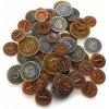 TLAMA games Sada univerzálních kovových mincí (50 ks) (metal coins set, 25x 1, 15x 5 a 10x 20)Sada obsahuje celkem 50 kovových mincí tří hodnot. Mince mají železné jádro a různé povrchové metalické úpravy. - 25 mincí hodnoty 1 (zašlá měď průměr 20 mm, 1,2 mm tloušťka, 3,5 g váha - jako korunová mince) - 15 mincí hodnoty 5 (zašlé stříbro, průměr 25 mm, 1,5 mm tloušťka, 6,5 g váha) - 10 min... |