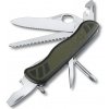 Victorinox Soldier Knive 0.8461.MWCH\nVreckový nôž veľkosti 111 mm, ktorý je súčasťou výbavy švajčiarskych ozbrojených síl. Zelená/čierna farba.\nObsahuje 10 funkcií:\n\nveľká zúbkovaná uzatváracia čepeľ s okom pre jednoručné otváranie\ |