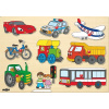 Woody vkládací puzzle dopravní prostředky (102191906)Jednotlivé dopravné prostriedky sa za pomoci úchopov vkladajú do príslušných otvorov. Vek: 2+ | Rozmer: 30 x 21cm | |