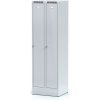 Šatní boxy - dvouplášťové dveře A3M 30 1 2 AKovová šatní skříň na soklu – ze spodu plastové kluzáky, dvoudveřová (dvoje dvířka nad sebou v jednom sloupci) - celosvařovaná, sokl v = 40 mm, šířka oddělení 300 mm. V oddělení: tyč na šaty + tři plastové háčky, na dveřích jeden plastový háček na ručník (bez police). Dvouplášťové dveře s omezovačem... |