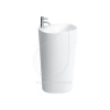 LAUFEN PALOMBA H8118040001041Voľne stojace umývadlo s 1 otvorom pre batériu uprostred, s keramickým nástenným uchytením, vrátane odpadového a prepadového ventilu Clou H8919430000001 a montážnej sady |